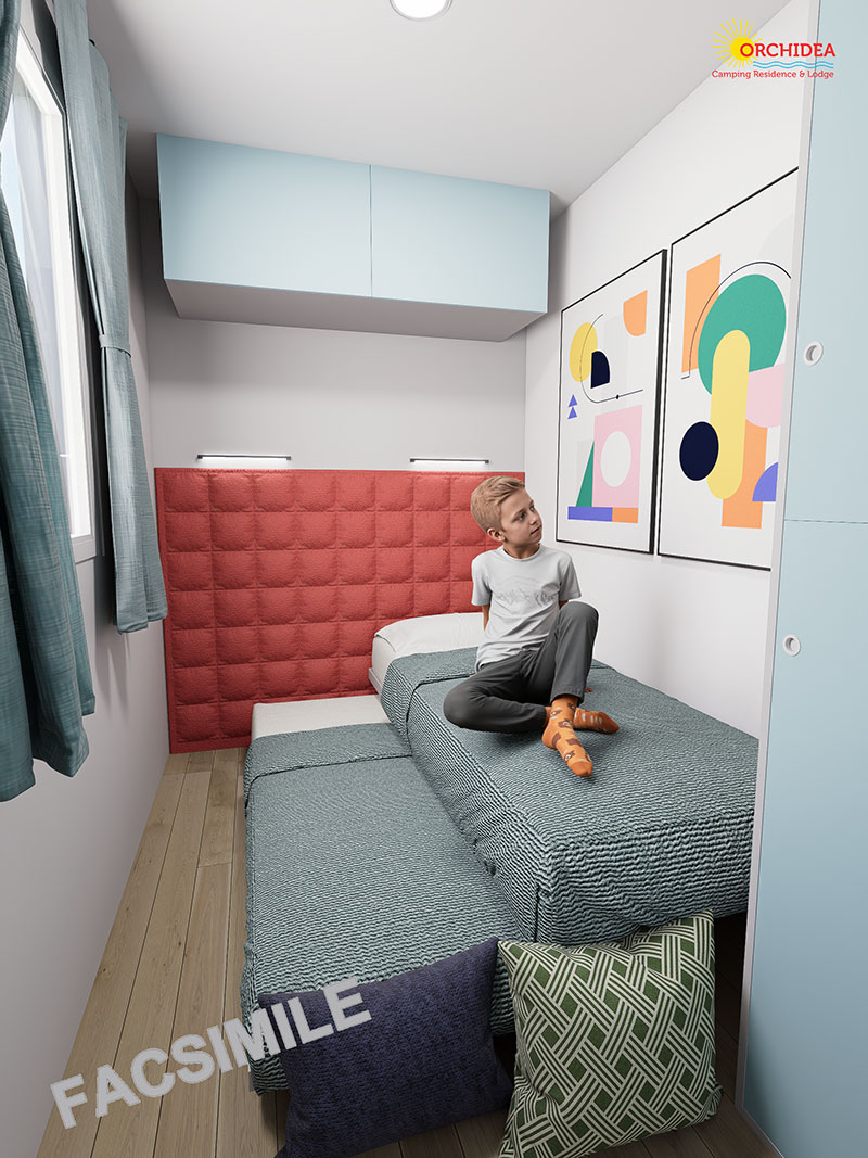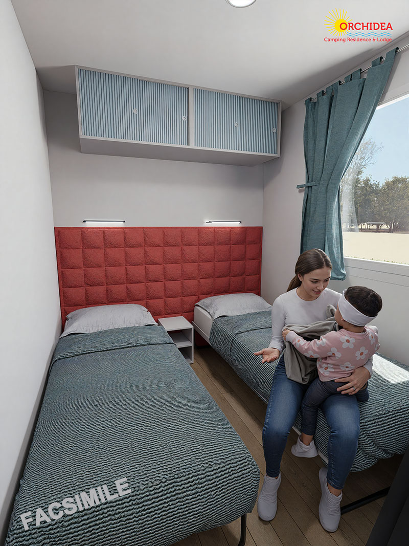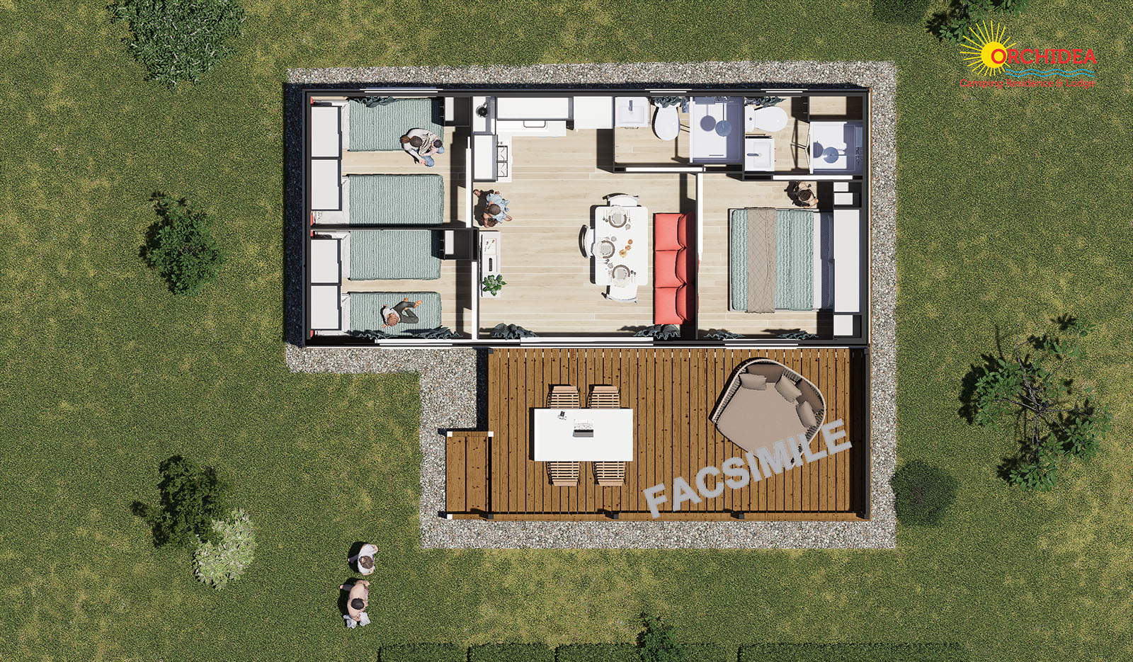 Maxi Orchidea 8.00mt x 4.00mt Stacaravans | Max. 6 mensen 1 slaapkamer met tweepersoonsbed (bed 140cm x 190cm), 2 slaapkamers met 2 eenpersoonsbedden (bed 70cm x 190cm), badkamer m
